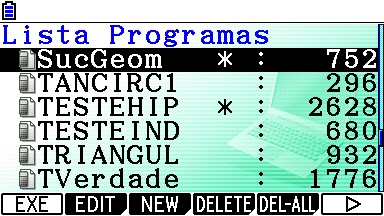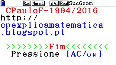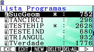 Muitas vezes os meus explicandos usam calculadoras que já não são "topo de gama". Bem, eu próprio tenho calculadoras que já não são topo de gama. Muitos dos programas que por vezes lhes passo são evoluções de programas escritos inicialmente para máquinas ainda mais antigas. Aqui ao lado tenho uma CASIO AFX 2.0 Plus (Não é permitida nos exames nacionais do ensino secundário por ter um menu CAS). Eu tenho uma e uso-a regularmente. A animação está a correr um programa que ilustra o triângulo de Pascal (esta versão do programa também corre numa FX1.0 plus). A nova secção de calculadoras deste blog apresentará animações mais ou menos como esta, bastando ao utilizador seleccionar o programa na lista. Tendo em conta que já dou explicações há cerca de 20 anos, como devem imaginar, tenho uma bela lista de programas. Alguns, muito simples estão partilhados em pdf na minha google drive. (Há um link no meu site pessoal) Outros, estão partilhados aqui no blog, na versão actual da secção de calculadoras. No passado, já mostrei algumas animações de alguns destes programas, convertidos para máquinas actuais. Para calculadoras Texas Instruments, em português, para já sugiro uma visita ao site do professor Paulo Correia. (Atenção, eu possuo calculadoras TEXAS INSTRUMENTS, mas neste momento estão mesmo todas avariadas... Tenho backups de alguns dos programas, e eventualmente um dia partilhá-los-ei). Quanto ao "Triângulo de Pascal", os alunos de 12º que ainda não o conhecem, conhecê-lo-ão em breve. Necessidade de um programa para isto, na verdade não há, por isso, raramente passo esta versão aos meus explicandos. Normalmente passo uma mais pequena, normalmente programada em segundos enquanto resolvem um exercício. |